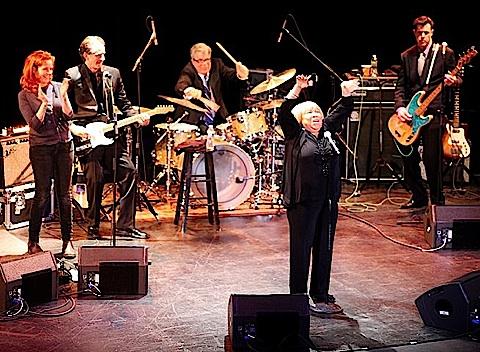 On March 27 Neko Case sat in with Mavis and the band at the end of a series of shows together. Neko’s achingly beautiful voice blended in perfectly. Here’s a photo…