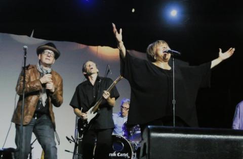 On April 23 Elvis Costello joined Mavis Staples and RHB for a rousing version of The Band’s song The Weight at the Byron Bay Blues Festival. Elvis sang the Crazy Chester verse and joined in on the background harmonies. Good times. Elvis about RHB: “…what a BIG sound. I’da swore there were more than just three wee blokes up there!”